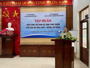 Tham dự và trực tiếp phổ biến nội dung có đồng chí Ngô Thị Bích Phượng – Phó trưởng Phòng nghiệp vụ Chi cục An toàn vệ sinh thực phẩm, cùng gần 40 cán bộ, viên chức, lao động thuộc các bộ phận làm công tác chăm sóc, nuôi dưỡng, y tế, tiếp phẩm, chế biến thực phẩm và quản lý của đơn vị.